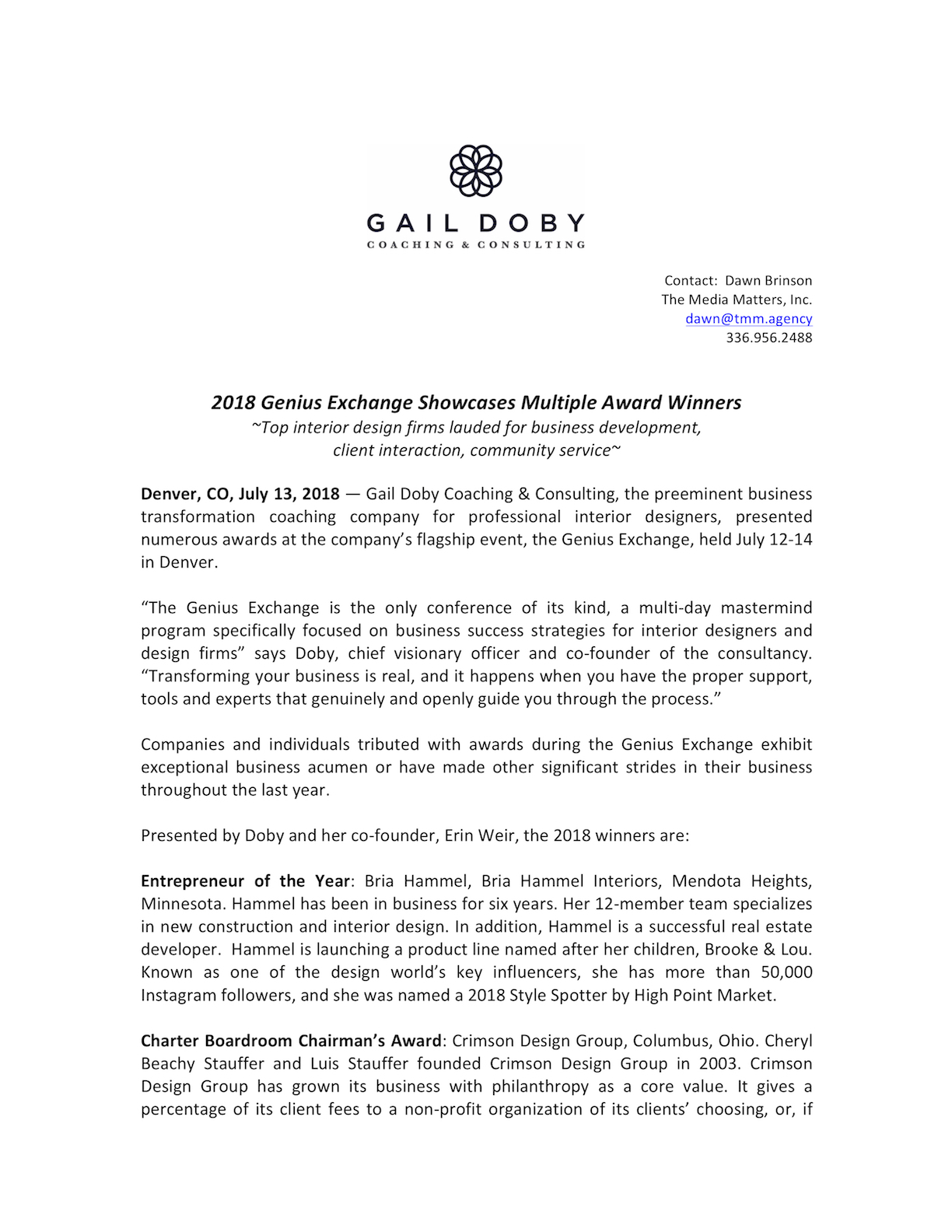 Gail Doby Coaching & Consulting's Breakthrough to Clarity Breakfast Provides Roadmap to Success for Interior Design Professionals