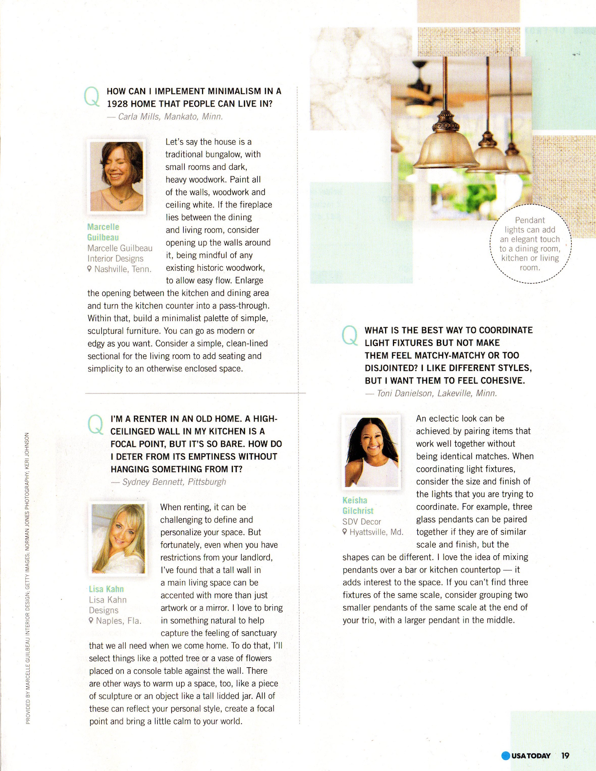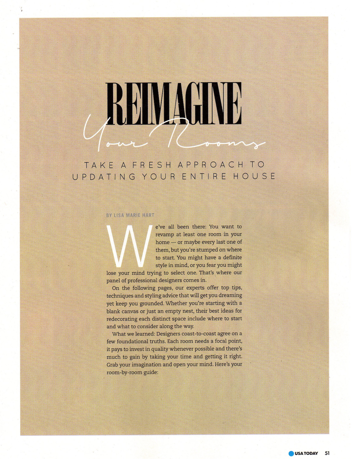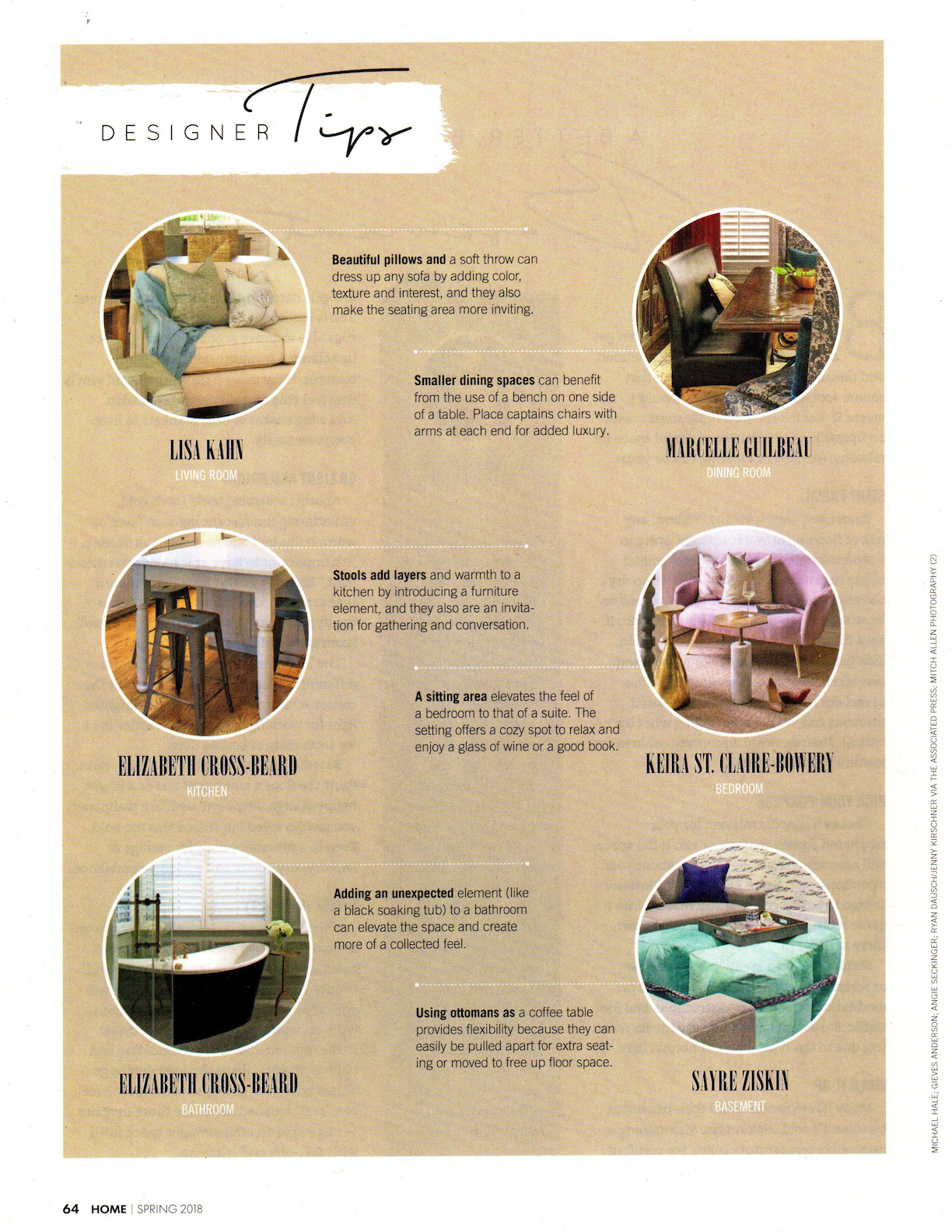Design Dilemmas/Reimagine Your Rooms/Designer Tips, HOME USA Today, Spring 2018