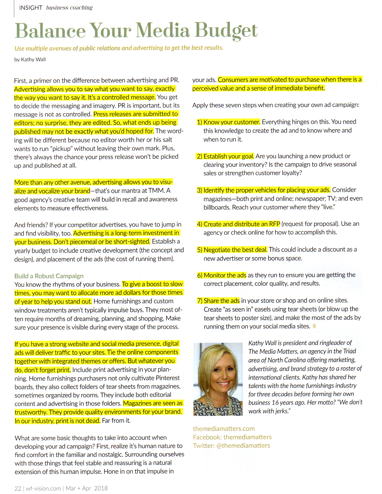 Balance Your Media Budget, Window Fashion Vision Magazine, March/April 2018