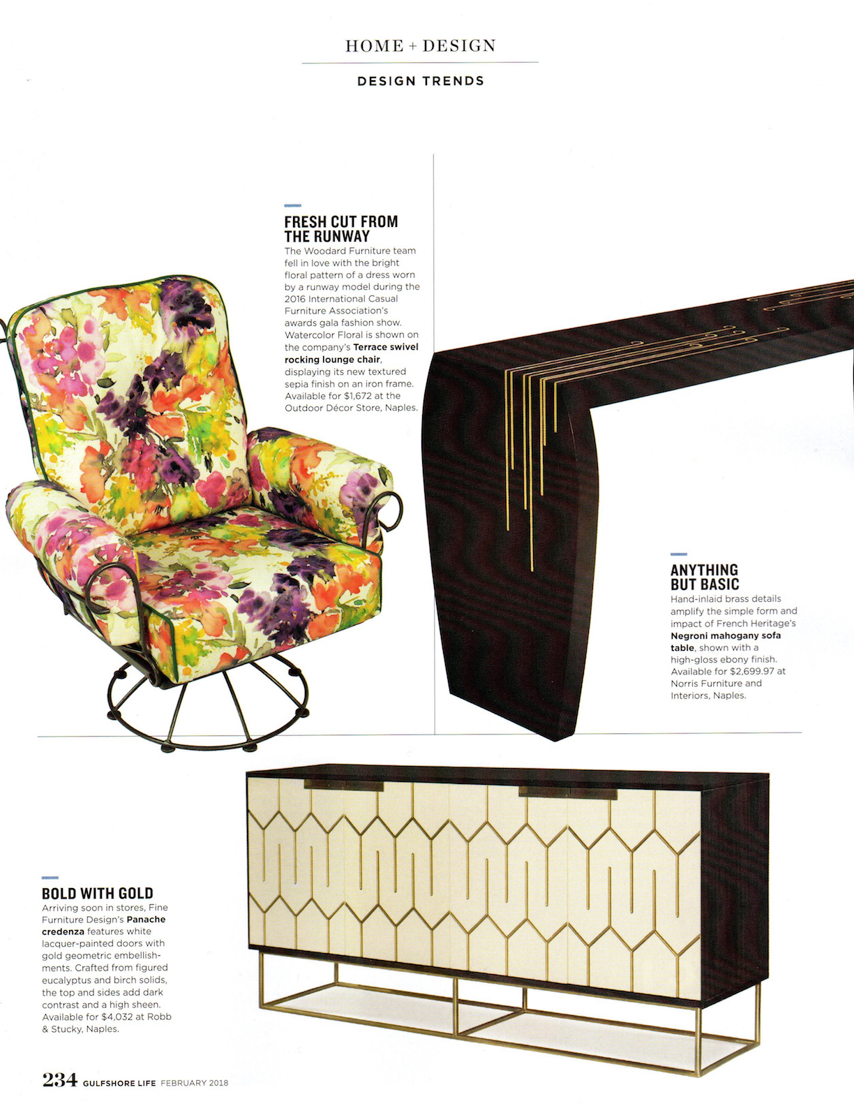 Design Trends - Fresh Cut From The Runway, Gulfshore Life, February 2018