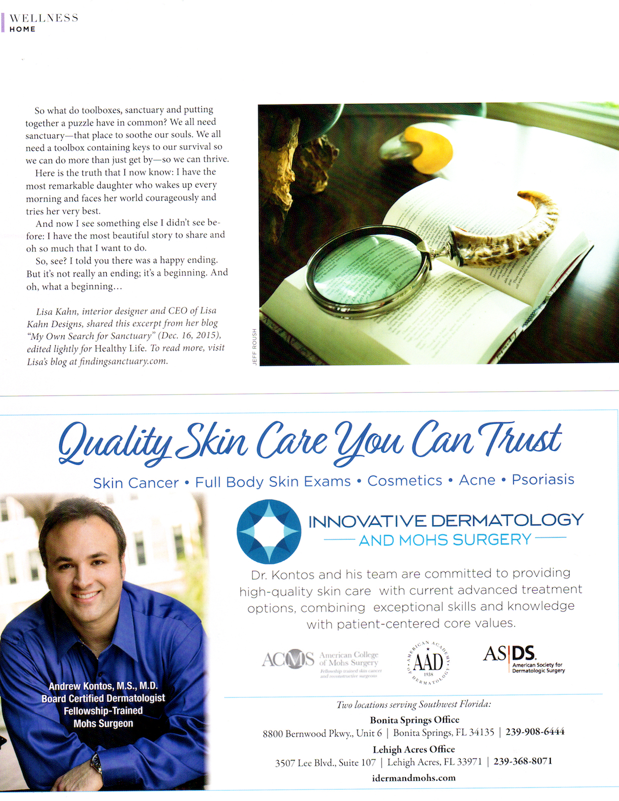 Wellness - My Own Search for Sanctuary, Healthy Life Magazine, 2017-2018