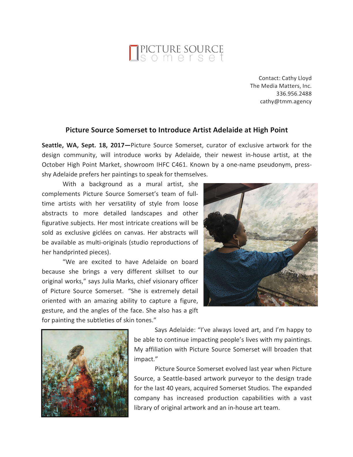 Picture Source Somerset to Introduce Artist Adelaide at High Point, September 2017