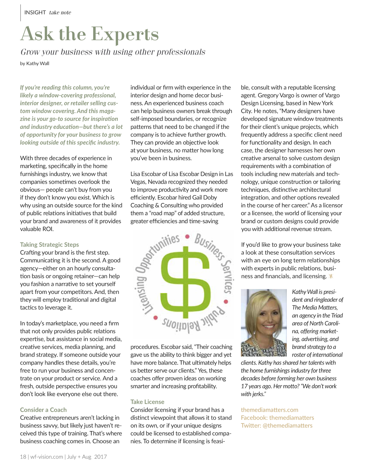 Social Media for Start-Ups, Window Fashion Vision Magazine, Sept/Oct 2017