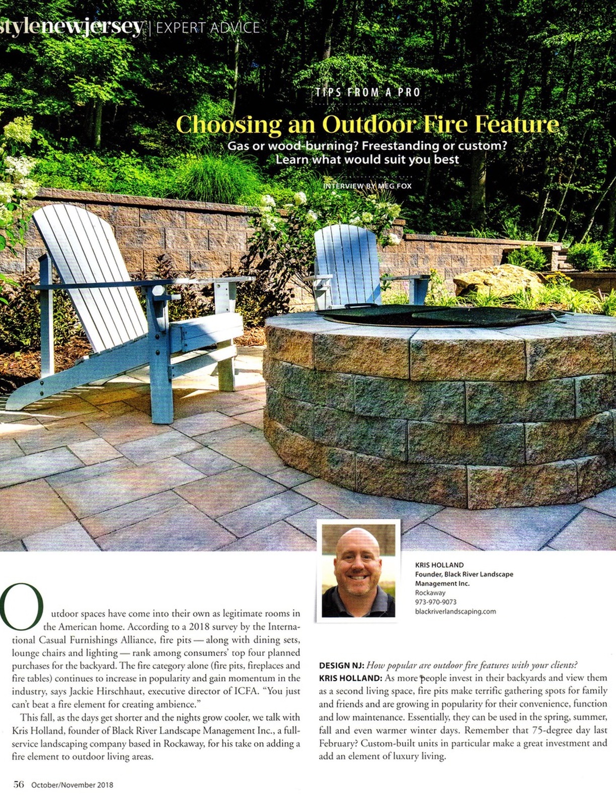 Tips From A Pro - Choosing an Outdoor Fire Feature, Design New Jersey, Oct/Nov 2018