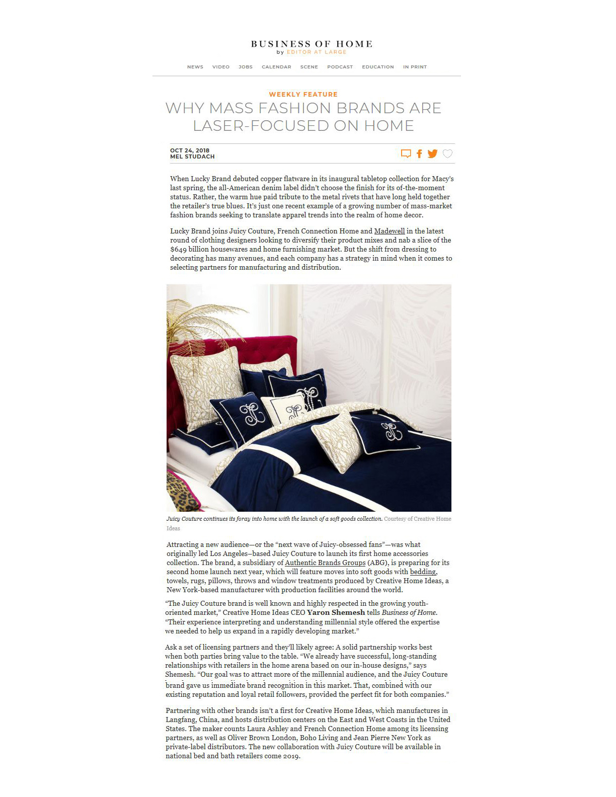 Why Mass Fashion Brands Are Laser-Focused on Home, BUSINESS OF HOME, October 2018