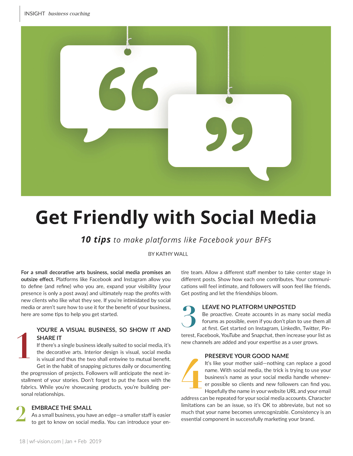 Get Friendly with Social Media, Window Fashion Vision Magazine, Jan/Feb 2019