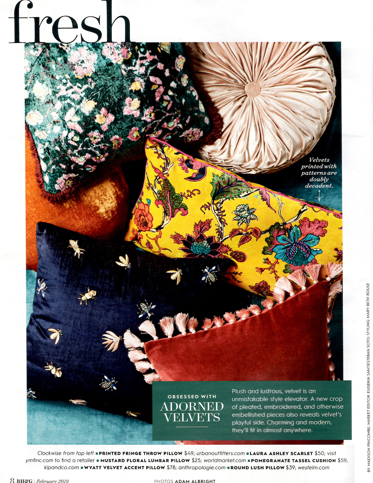 Obsessed With Adorned Velvets, Better Homes & Gardens Magazine, February 2019