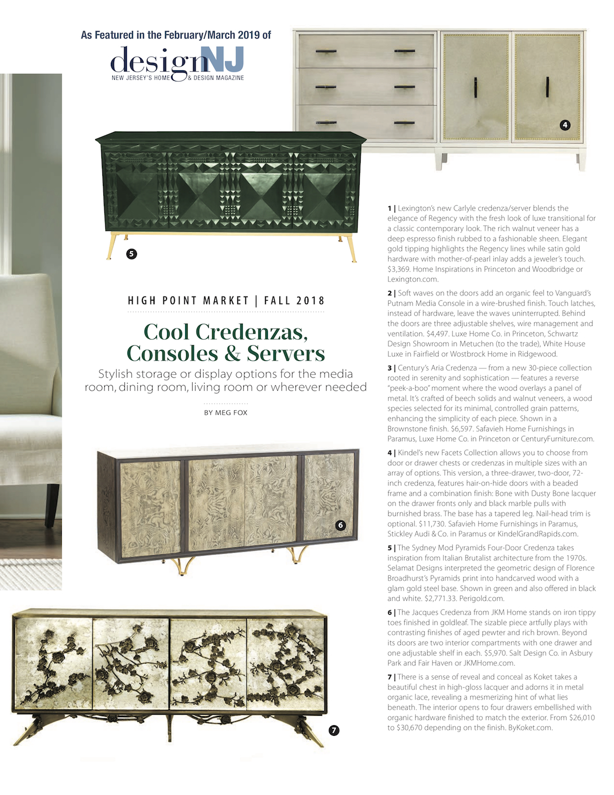 Cool Credenzas, Consoles & Servers, Design New Jersey, February/March 2019