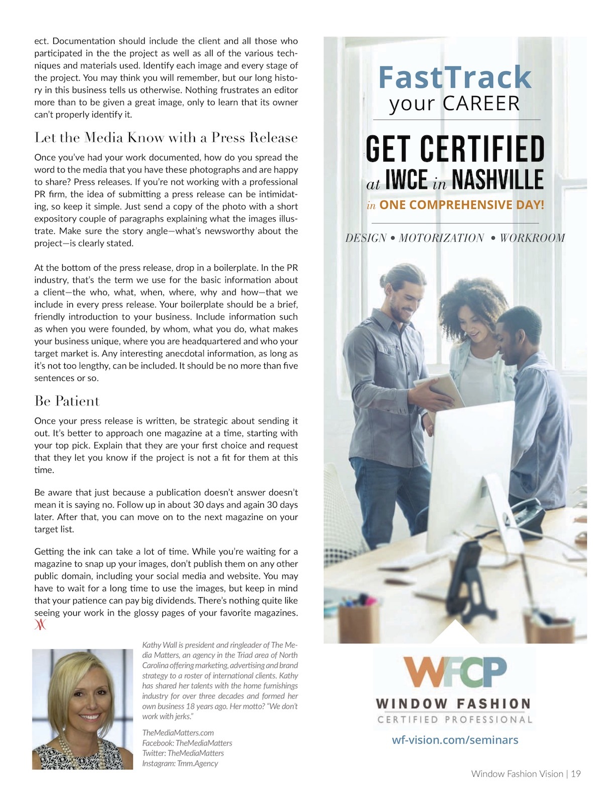 See Your Name in Print: How to Get Your Work Published, Window Fashion Vision Mag, March/April 2019