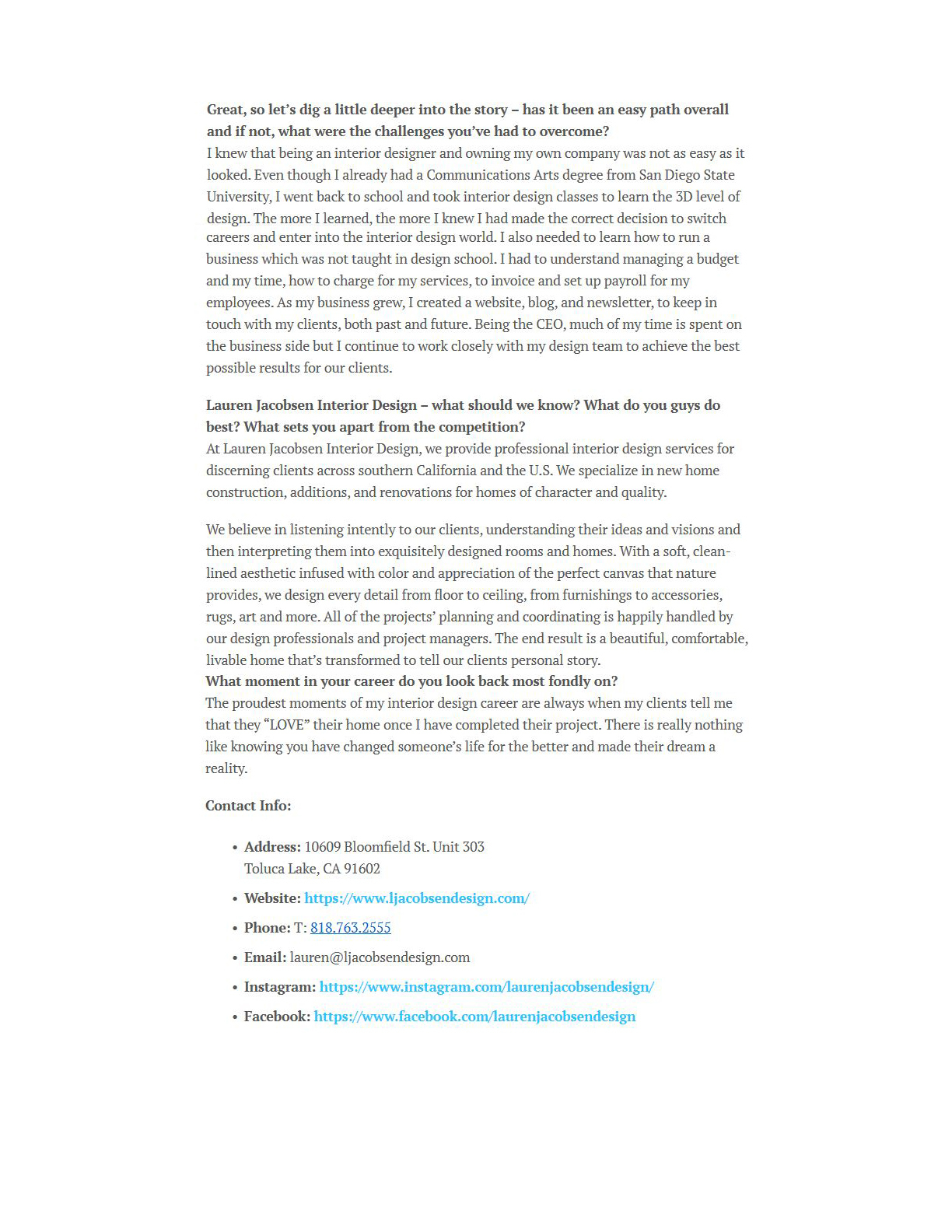 Profiles in Design: Lauren Jacobsen, Designers Today Online, August 2022