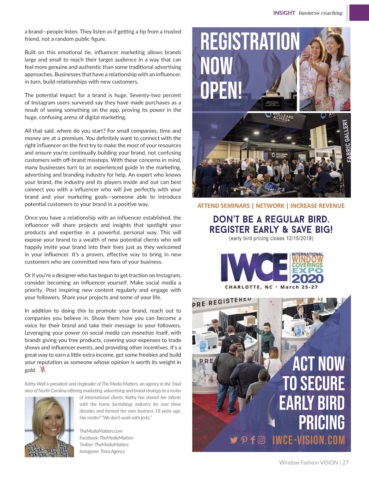 Influencers: Your New Best Friends, Window Fashion Vision Magazine, Nov/Dec 2019