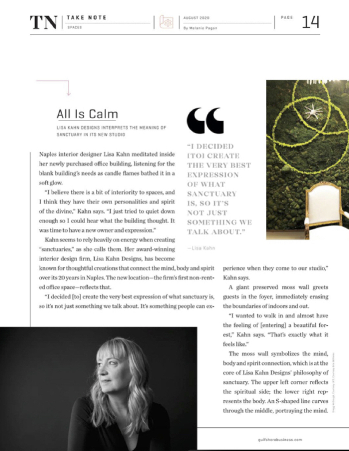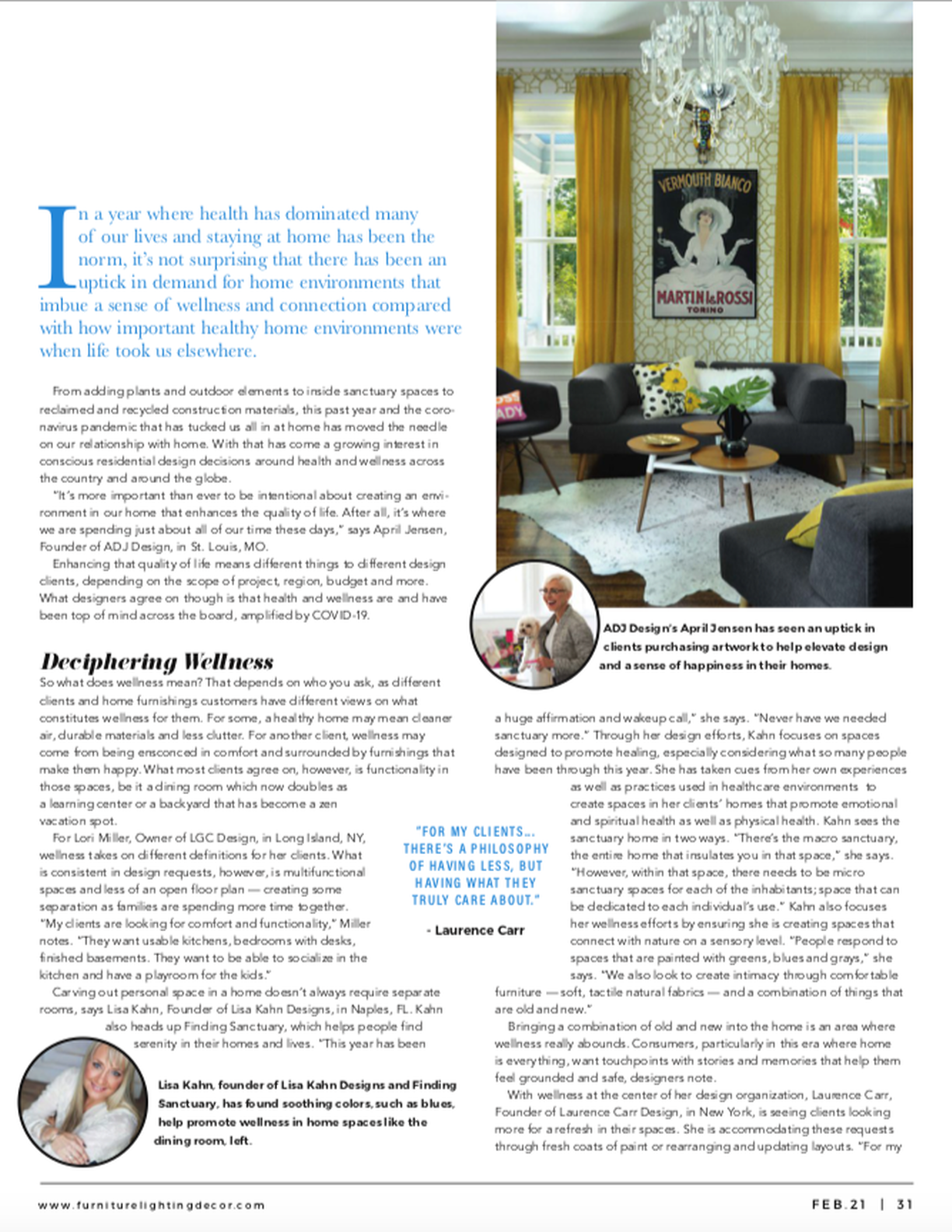 Lisa Kahn Designs on the Gold List 2020, Luxe Magazine, January/February 2020
