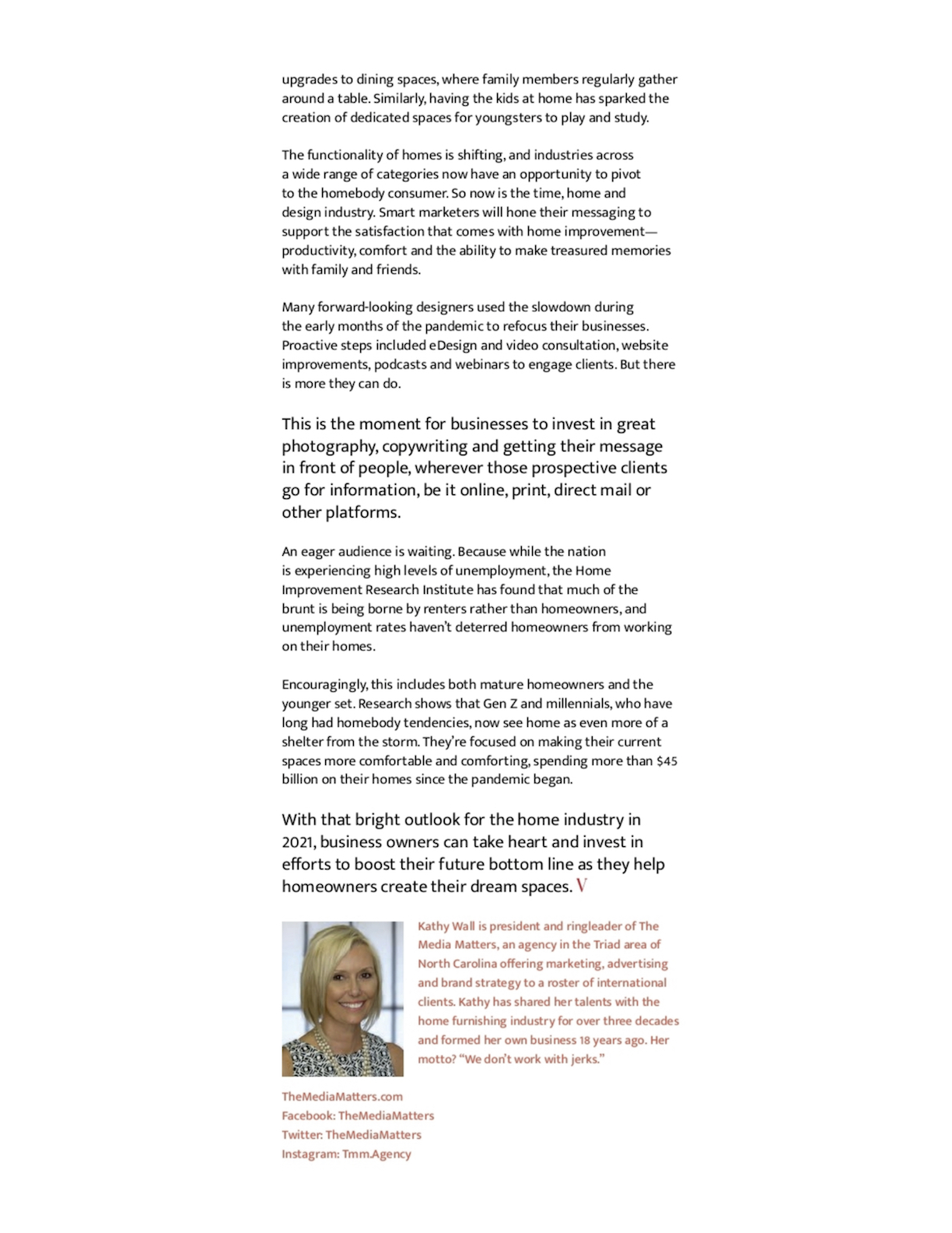 The Media Matters takes on new leadership after 22 years, Furniture Today, September 2022
