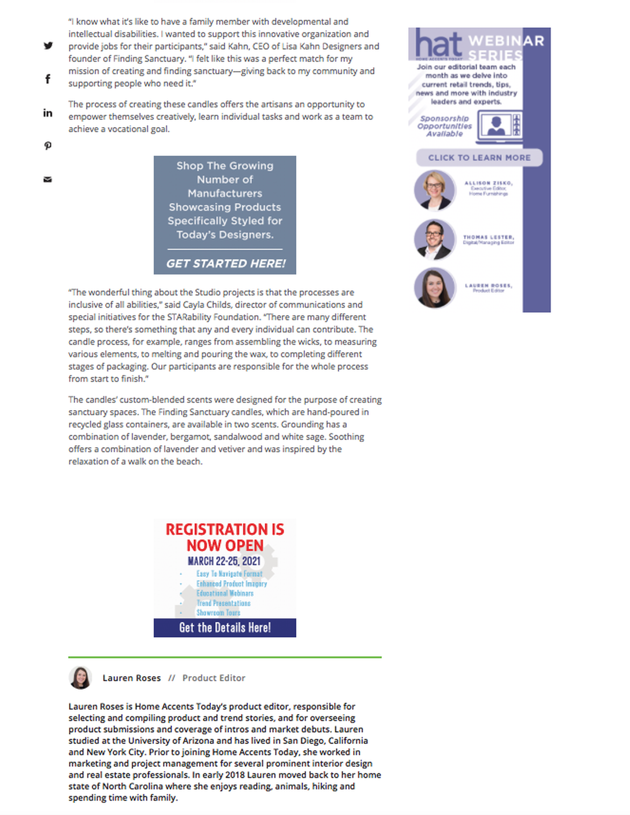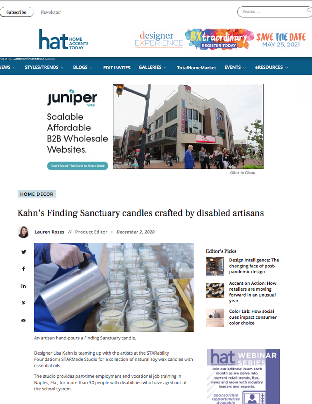 Kahn's Finding Sanctuary candles crafted by disabled artisans, Home Accents Today Online, December 2, 2020