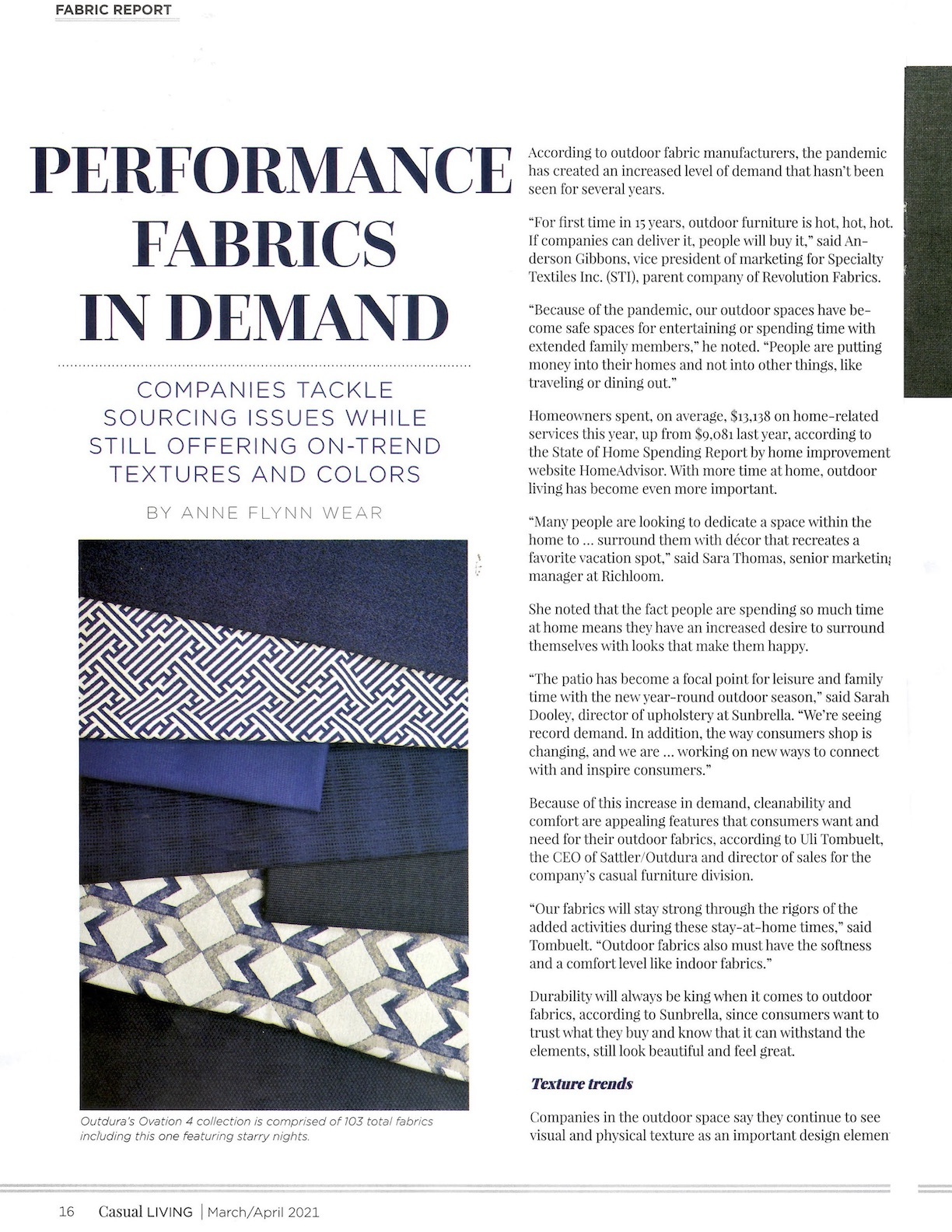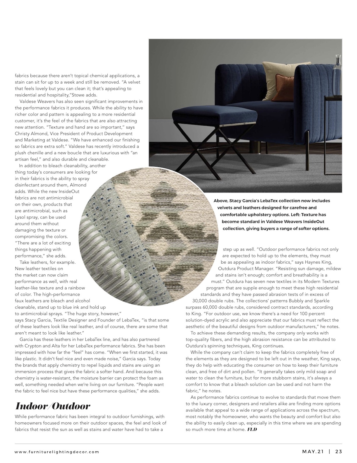 Performance Fabric Touchable Textures, Furniture Lighting & Decor, May 2021