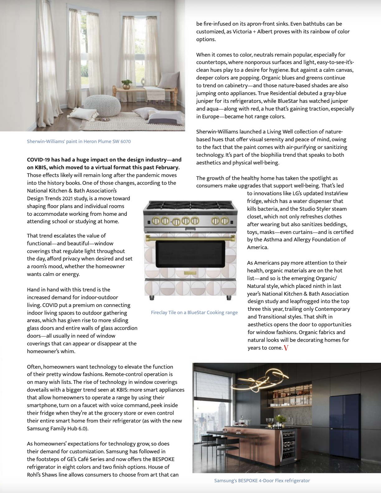 2021 TRENDS: Customization, Technology, Eco and Wellness, Window Fashion Vision Magazine, May/June 2021