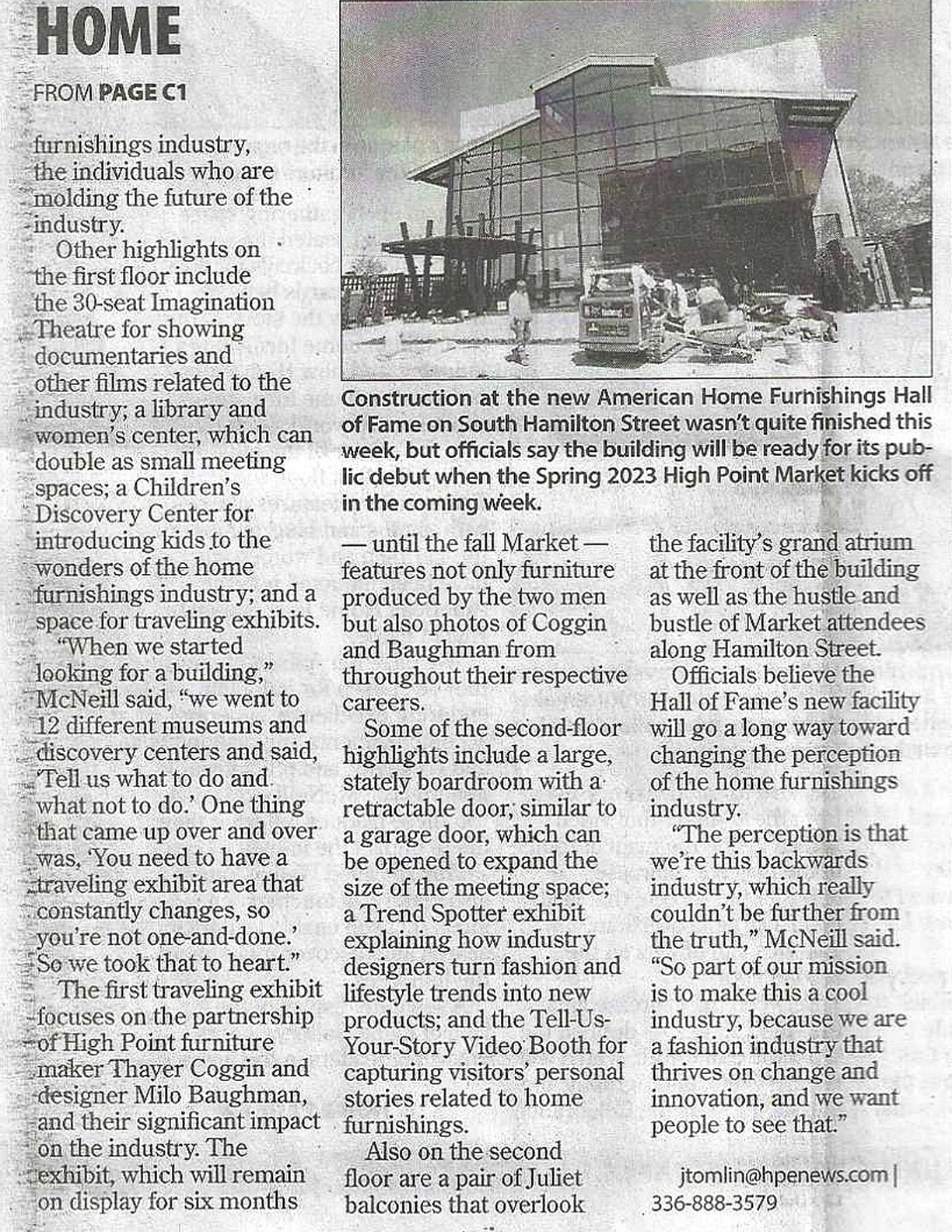 Furniture Industry landmark: Hall of Fame headquarters designed to be a year-round attraction in High Point, Furniture Today, October 2022
