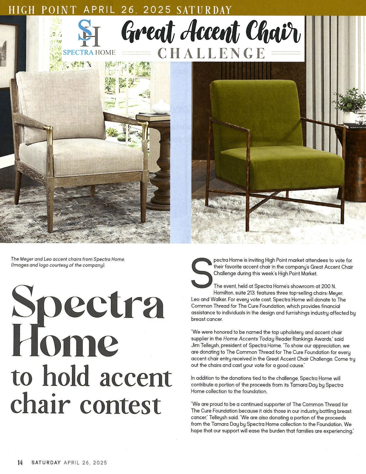 Spectra Home to hold accent chair contest, Home Accents Today, April 26, 2025