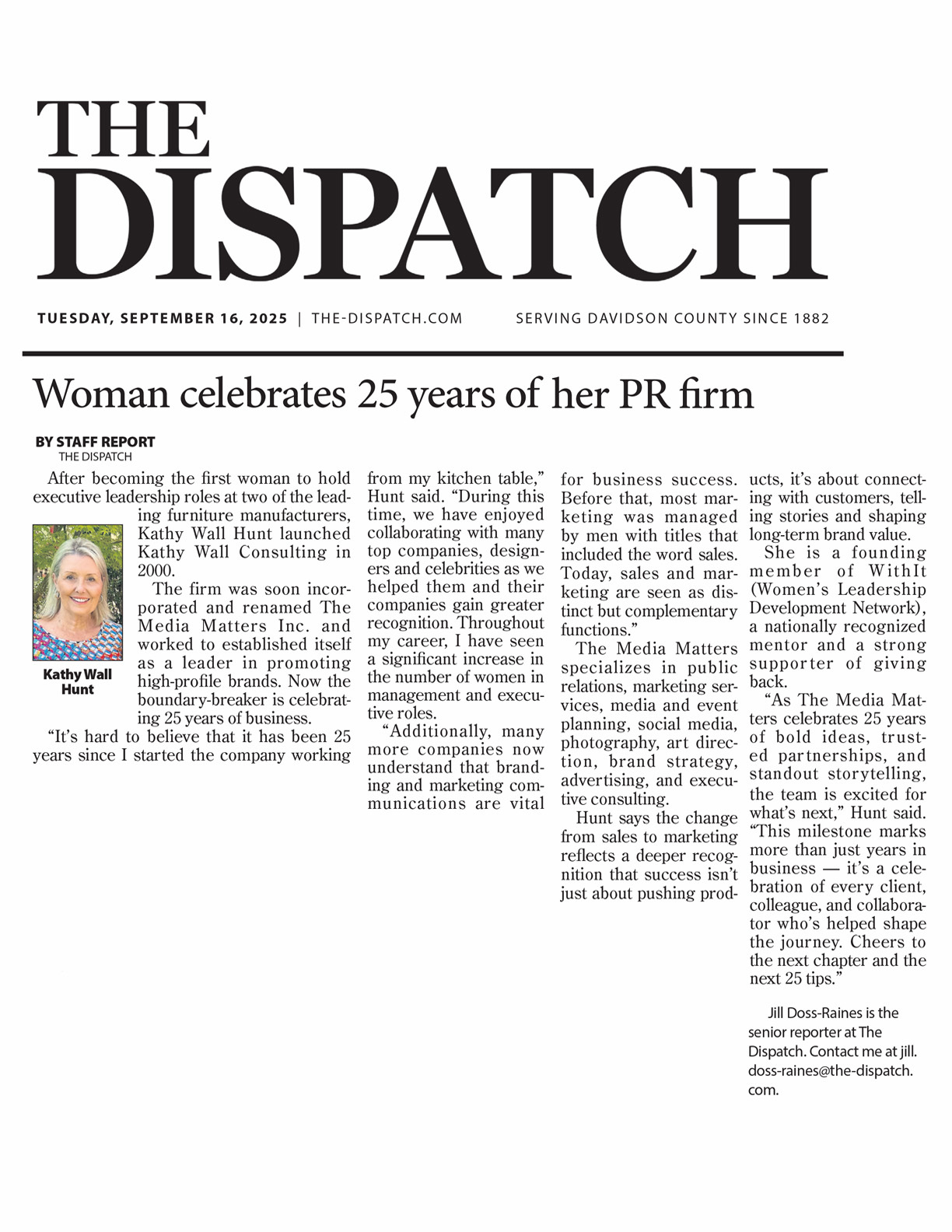 Woman Celebrates 25 Years of Her PR Firm, The Dispatch, September 16. 2025